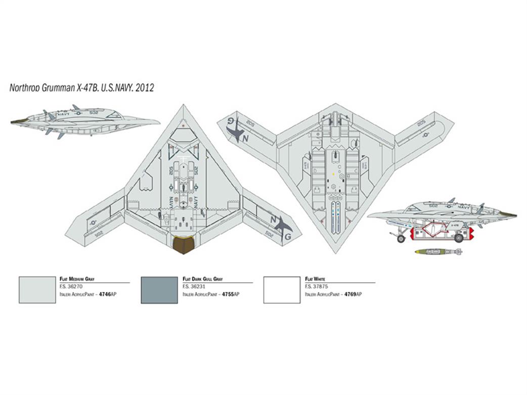 The Northrop Grumman X-47B is an demonstration unmanned combat air vehicle (UCAV) expressly designed and developed to operate from the flight decks of the US Navy aircraft carriers. The X-47B flew for the first time in 2011 and has performed, in the following years, several operational tests completed in 2015. The X-47B was used in the test cycles on board the U.S.S aircraft carrier George H.W. Bush (CVN-77) and it performed take-off, landing, air-refueling duties. To optimize the on board capability the X-47B is equipped with folding wings in order to minimize the space on the over crowded flight decks of the aircraft carriers. It is equipped with a Pratt & Whitney turbofan engine that guarantees subsonic performance and in its two loading bays it can provide an offensive load of over 2,000 kg.