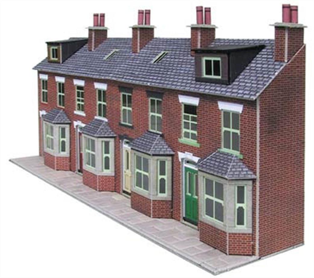 Metcalfe N Low Relief Terraced House Fronts Brick PN120 contains two rows of four house fronts, as well as optional components so you can choose whether your houses have plain fronts or dormer windows.