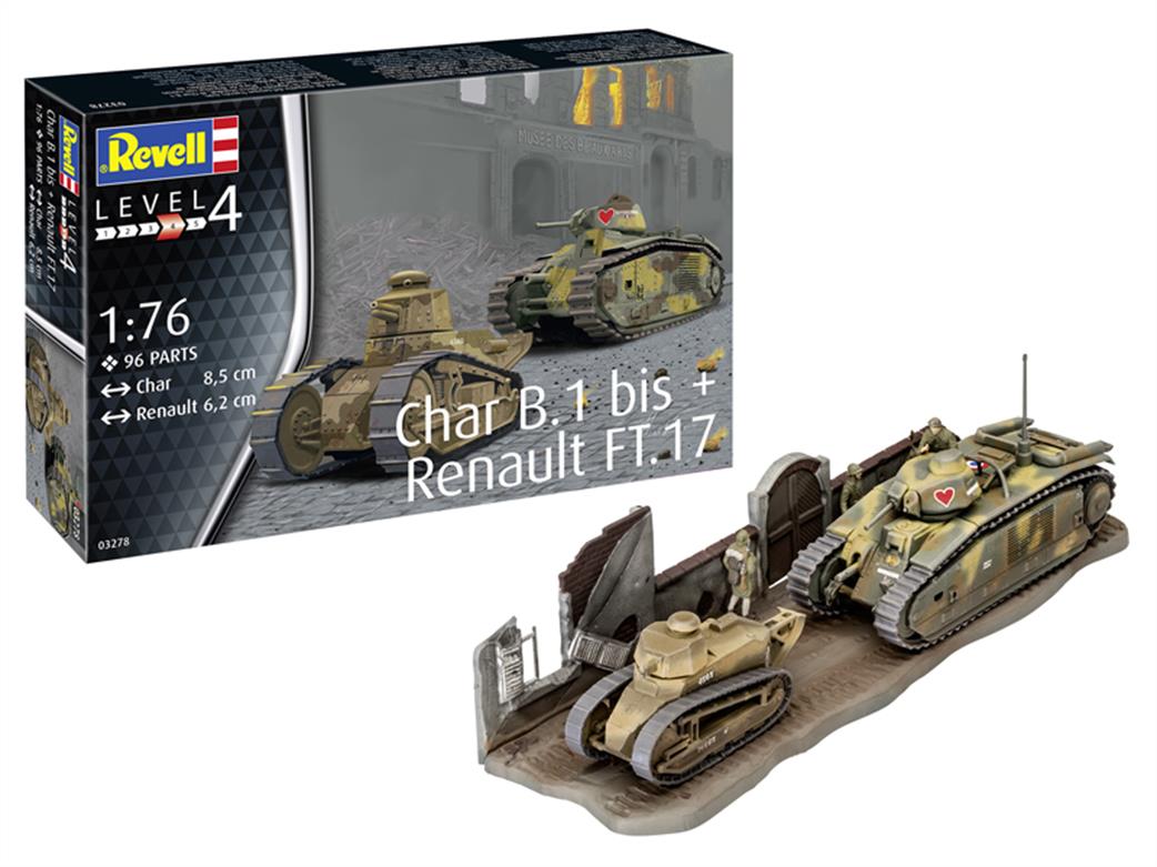Model kit consisting of the most famous French tanks of the 2nd World War, the Char B.1 to & Renault FT. 17.