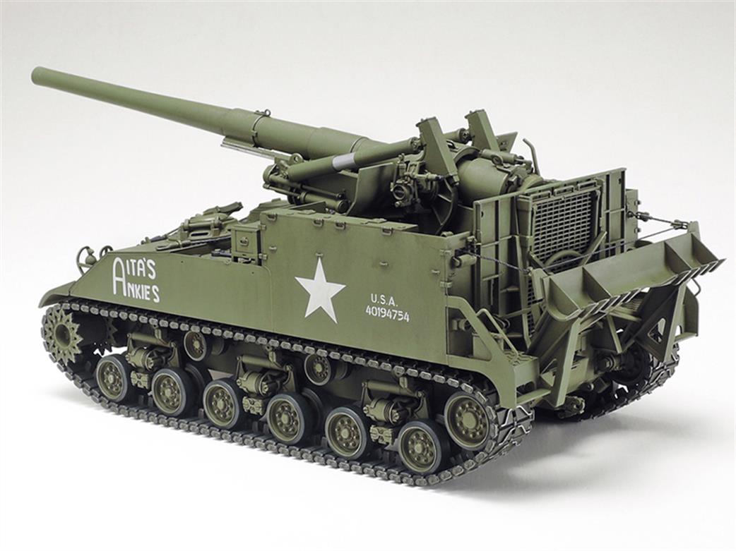 The kit uses all new tooling with the exception of the suspension parts as they are from the M4A3E8 Sherman "Easy Eight" model kit. The M40 was a significant step in U.S. Army artillery mechanization, pairing the M1 155mm gun with the proven M4 Sherman chassis. Armour was light given its intended use as a long range weapon (they were effective up to 23.5km) away from the front line, while the layout was changed from the M4 to allow a big fighting compartment at the rear to accommodate the big gun. It was fitted with smooth horizontal volute spring suspension (HVSS). Over 400 were produced before the end of WWII; although they never fought in the conflict, one example of their T83 prototype did. The M40 served in the Korean War, and was eventually replaced by the M53.